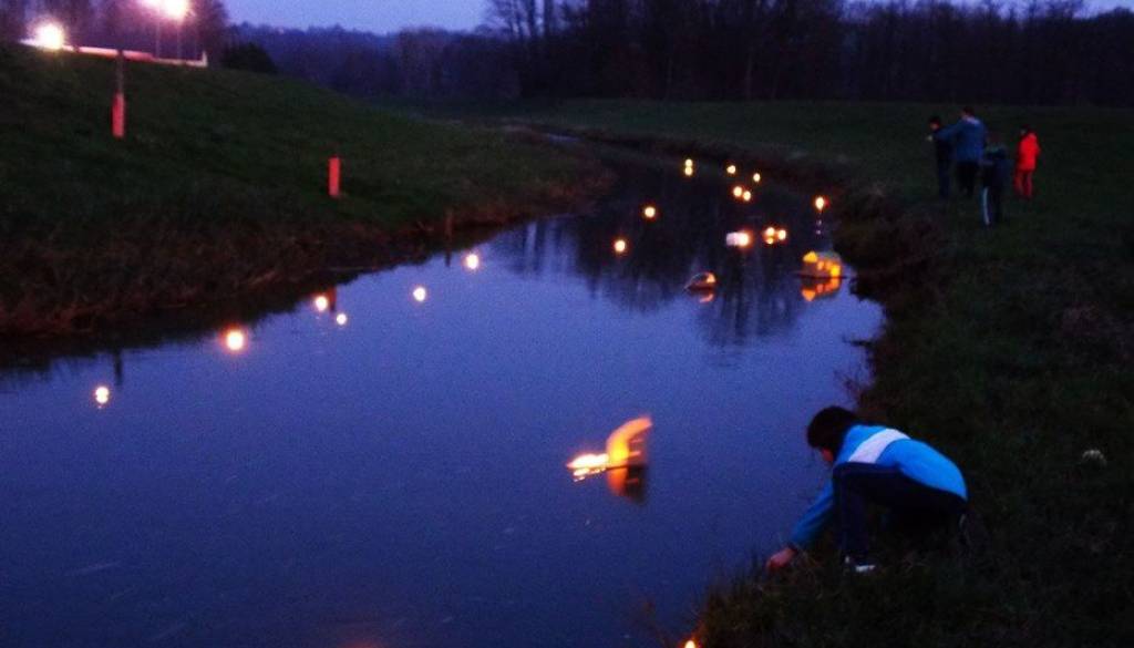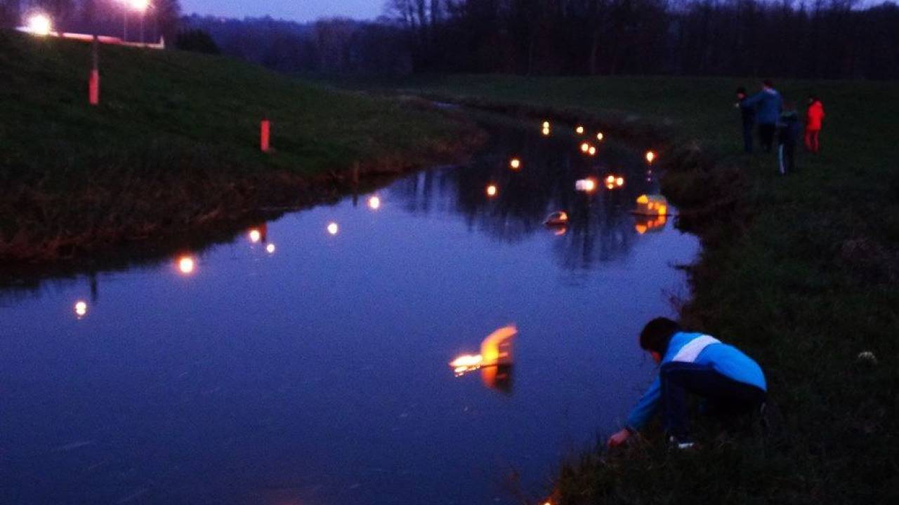 Po Ščavnici so danes zvečer plavale lučke, ki so jih naredili otroci s starši iz Pristave in okolice.