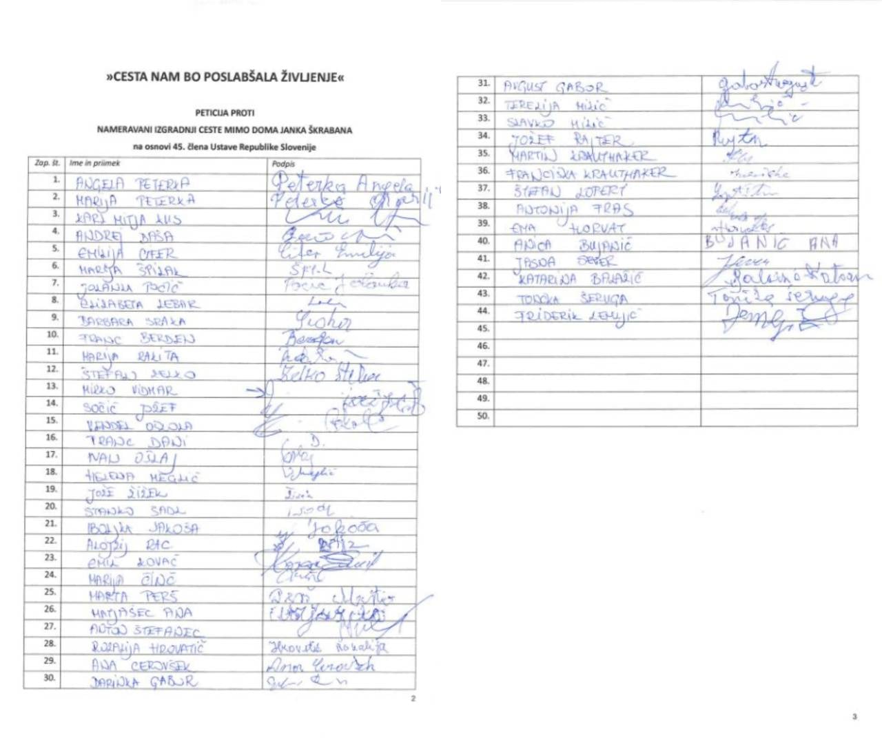 Peticijo proti izgradnji ceste mimo Doma Janka Škrabana je podpisalo 44 stanovalcev doma.
