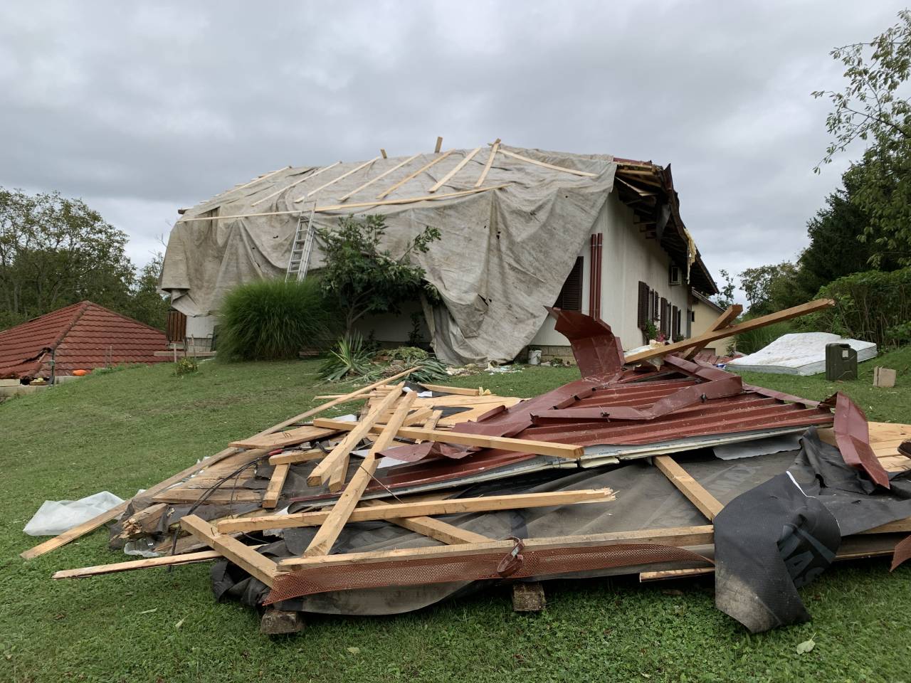 Med 150 poškodovanimi zgradbami v okolici Ormoža je tudi hiša družine Zadravec v Hermancih. Orkanski veter je dobesedno odnesel streho s hiše in za nekaj metrov premestil nadstrešek, pod katerim so ostali trije uničeni avtomobili.