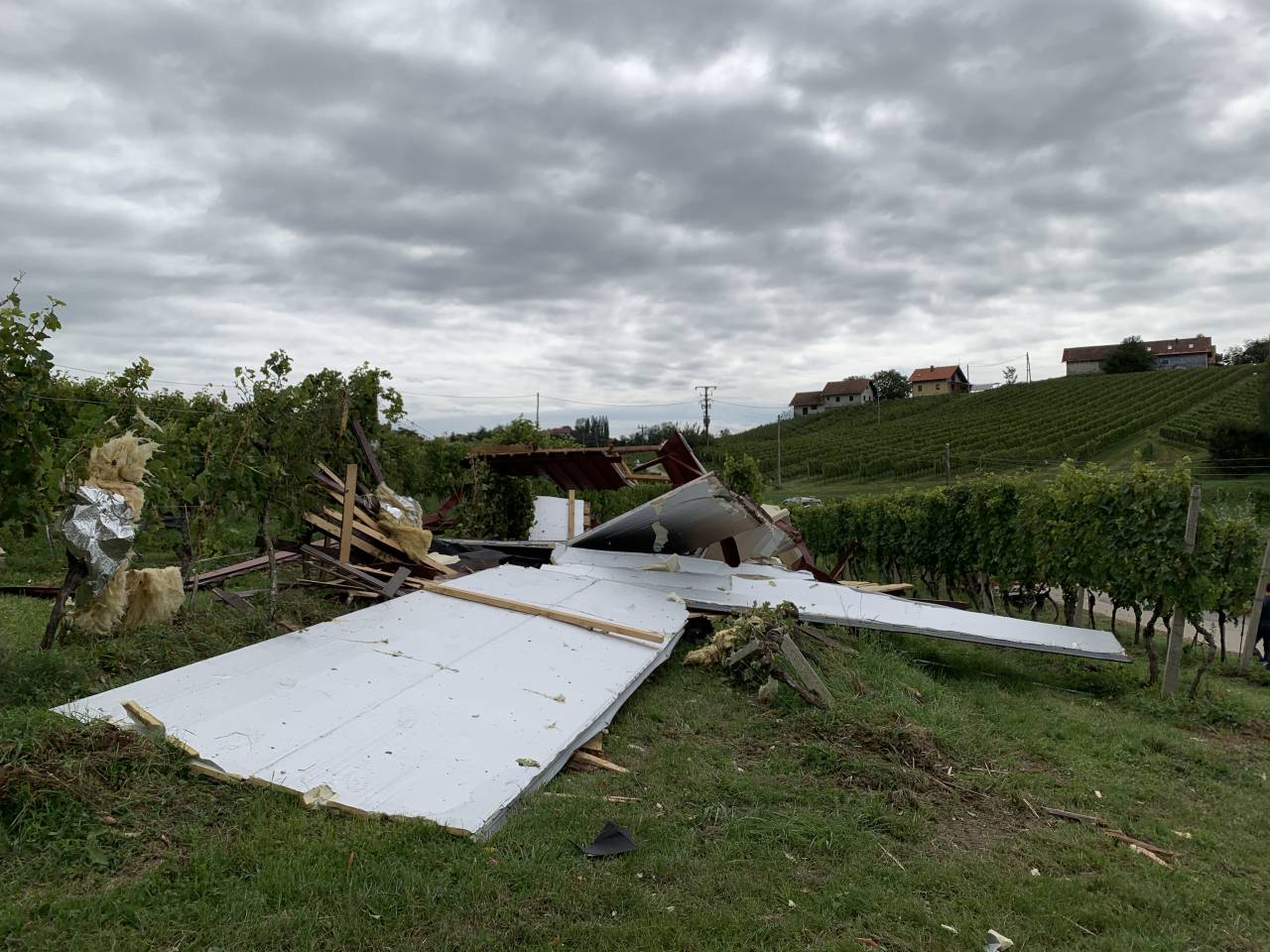 Ob odkritih strehah je veter za sabo pustil tudi uničene vinograde in celo prevrnjeno kmetijsko mehanizacijo. "To je bilo tako kot sodni dan, tako neurje, da je to neverjetno," nam je povedal Janez Borko. Predvsem starejši so dopoldne nestrpno čakali, kdaj se bodo gasilci po nočnih intervencijah znova vrnili in zrli v nebo v pričakovanju novih neviht. "To so stare hiše, zdaj pa naj to nalije, potem pa bo še bolj razpadalo to," je povedla Cvetka Belcl pred svojo hišo brez strehe.