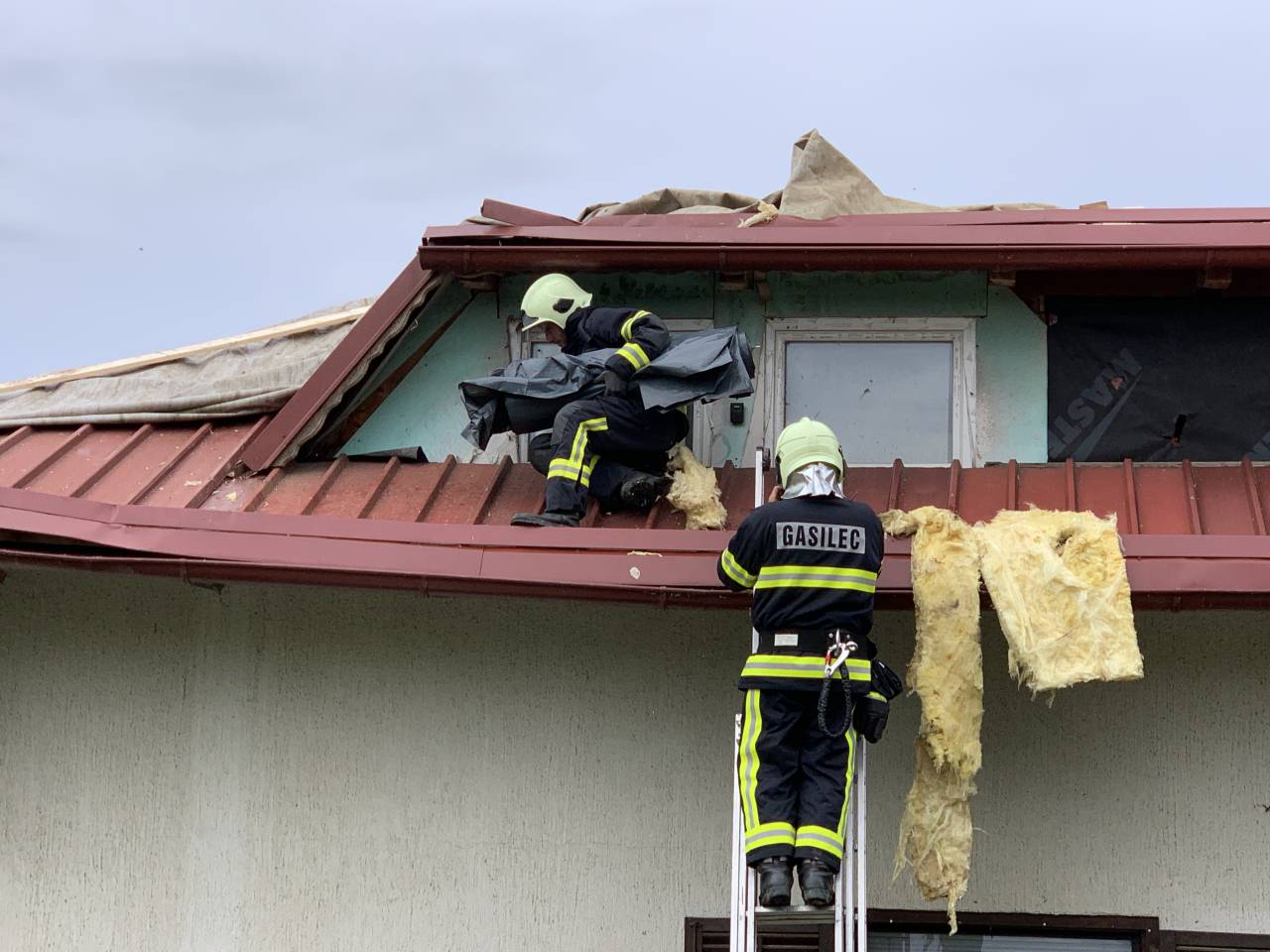 Družina Zadravec je danes dopoldne s solzami v očeh pospravljala razdejanje okoli svoje hiše v Hermancih. Orkanski veter je streho dobesedno odnesel s hiše. Začasno so hišo včeraj s pomočjo gasilcev pokrili s cerado, danes pa še dodatno z zaščitno folijo.