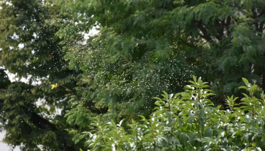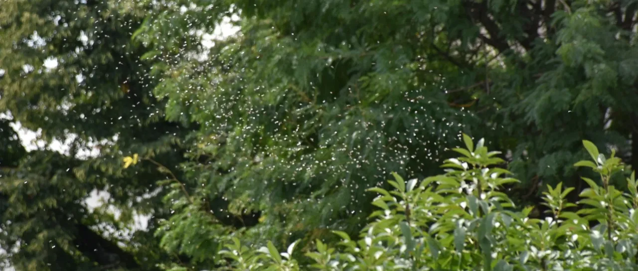 Ta pojav, ki ga ljudje pogosto označijo kot »črne leteče zavese«, je v resnici naravni del življenjskega kroga določenih žuželk – gre namreč za paritveni ples letečih mravelj.