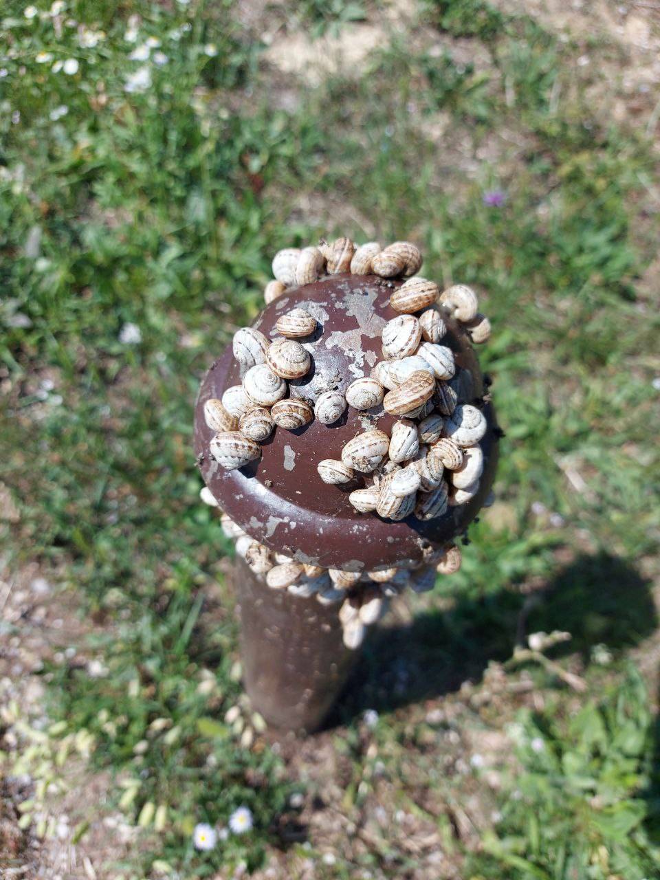 Polži estivirajo na količkih obcestnih ograj in stebrov