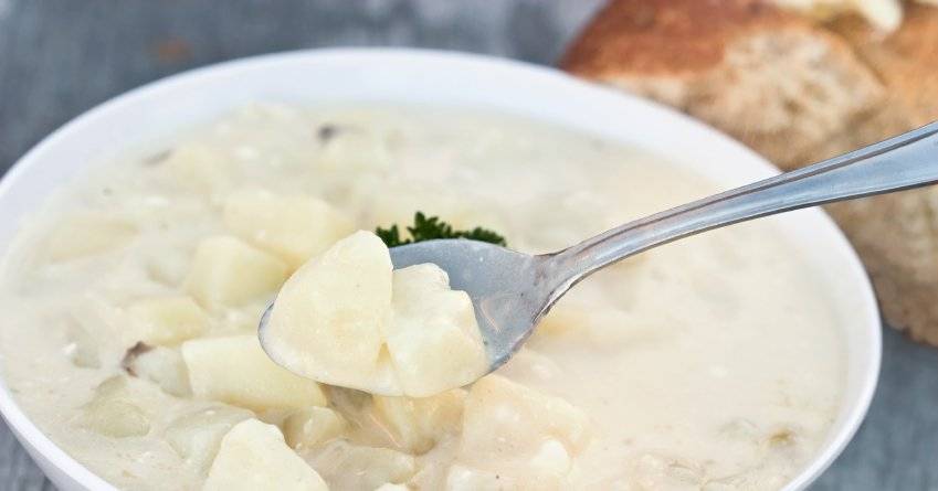 Krompir olupimo in narežemo na kocke. V lonec damo vodo, lovorjev list, sol in krompir ter kuhamo do mehkega. Medtem pripravimo podmet iz mleka in moke ter ga vlijemo h krompirju in kuhamo še pet minut. Juho začinimo z muškatnim oreščkom in pred serviranjem dodamo kislo smetano.