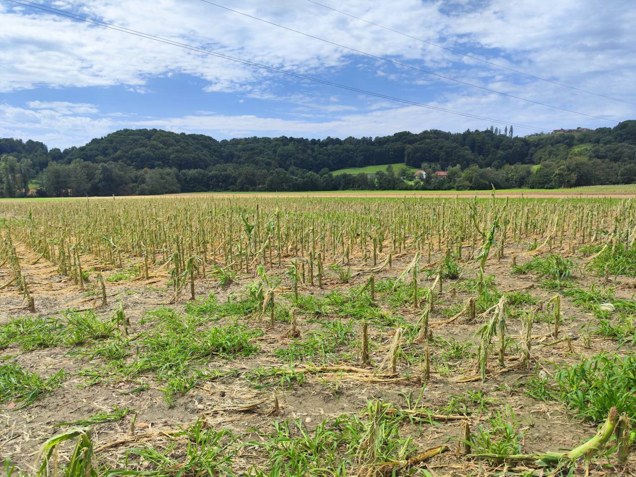 Irena Leonida Kropf, direktorica Kmetijsko gozdarskega zavoda Maribor, je dejala, da je popolnoma, torej 100-odstotno uničenih tri in pol hektarjev koruze, zaradi česar kmetom ne preostane drugega, kot da polja preorjejo. Popolnoma je uničenih tudi nekaj hektarjev vinogradov.