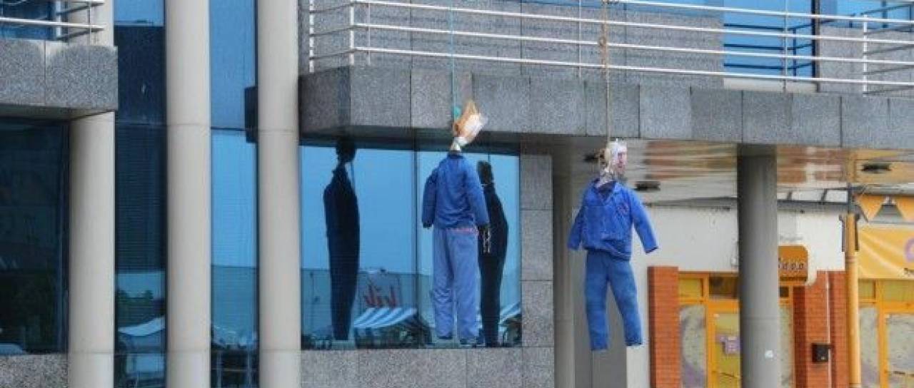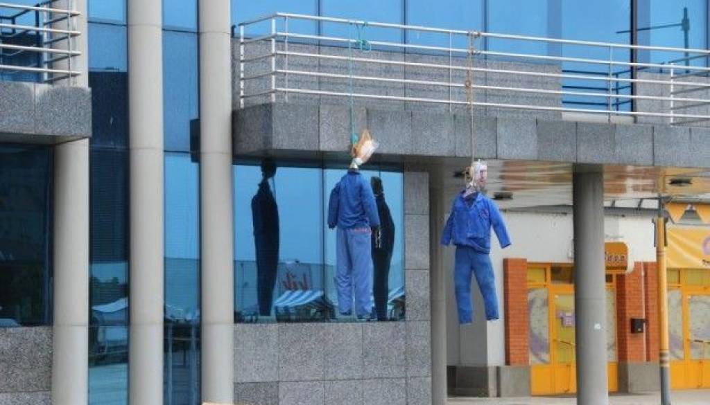 Na nekdanjo upravno stavbo Nafte Lendava, so neznanci obesili dve lutki z vrvmi okoli vratu. Na glavi sta imeli zalepljena obraza direktorja Nafte Lendava Dušana Stoparja in Roberta Sereca, prokurista v hčerinski družbi Nafta Petrochem. Dogodek sovpada v včerašnjim vloženim predlogom za stečaj Nafte Petrochem, o katerem smo pisali tudi na našem spletnem mediju. Delavci v Nafti Petrochem stavkajo že od začetka avgusta, plač pa niso prejeli že več mesecev. Kot je včeraj povedal generalni direktor Nafte Lendava Dušan Stopar, se je stečaj izkazal kot edina, najbolj smotrna in pametna rešitev za prekinitev agonije zaposleni.