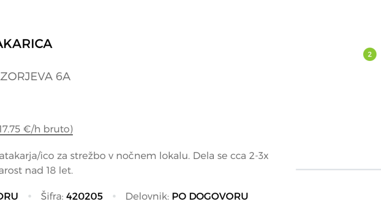 »Podjetje potrebuje natakarja/ico za strežbo v nočnem lokalu. Dela se cca. dvakrat do trikrat tedensko. Pogoj je starost nad 18 let,« lahko preberemo v oglasu.