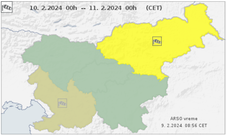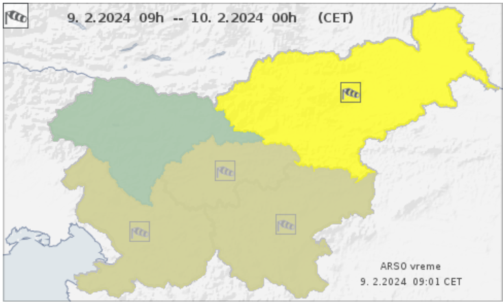 Zaradi napovedanih močnih sunkov vetra je agencija za okolje, za danes in jutri izdala tudi rumeno opozorilo za severovzhod Slovenije.