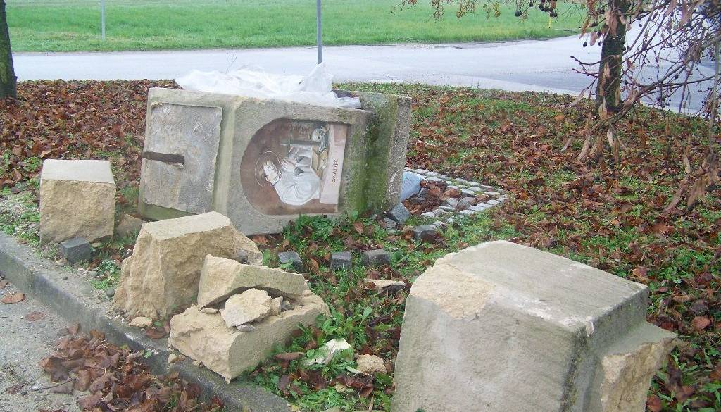 116 letni kip svetega Jožefa se je zaradi prometne nesreče razsul.