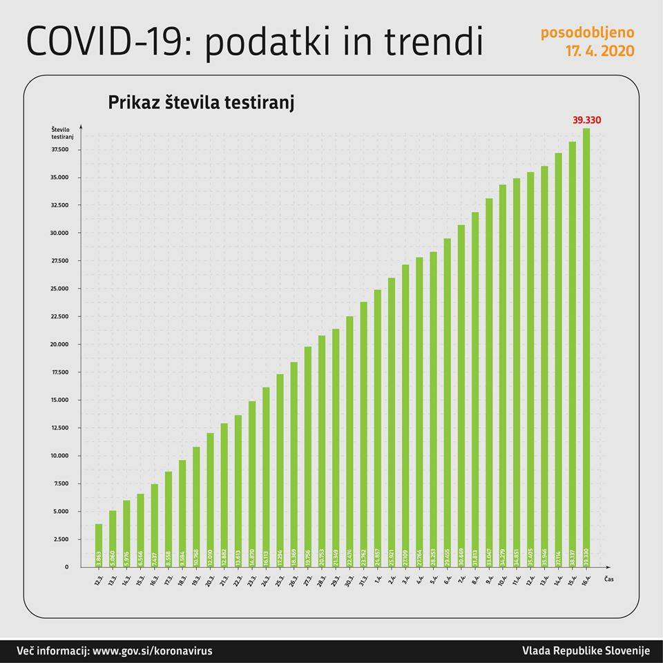 Skupno je bilo opravljenih že 39330 testiranj, samo včeraj 1193 novih testiranj.