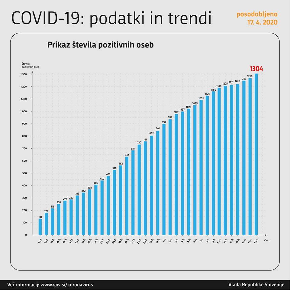 V Sloveniji so trenutno pozitivne 1304 osebe, samo včeraj 36 novih.