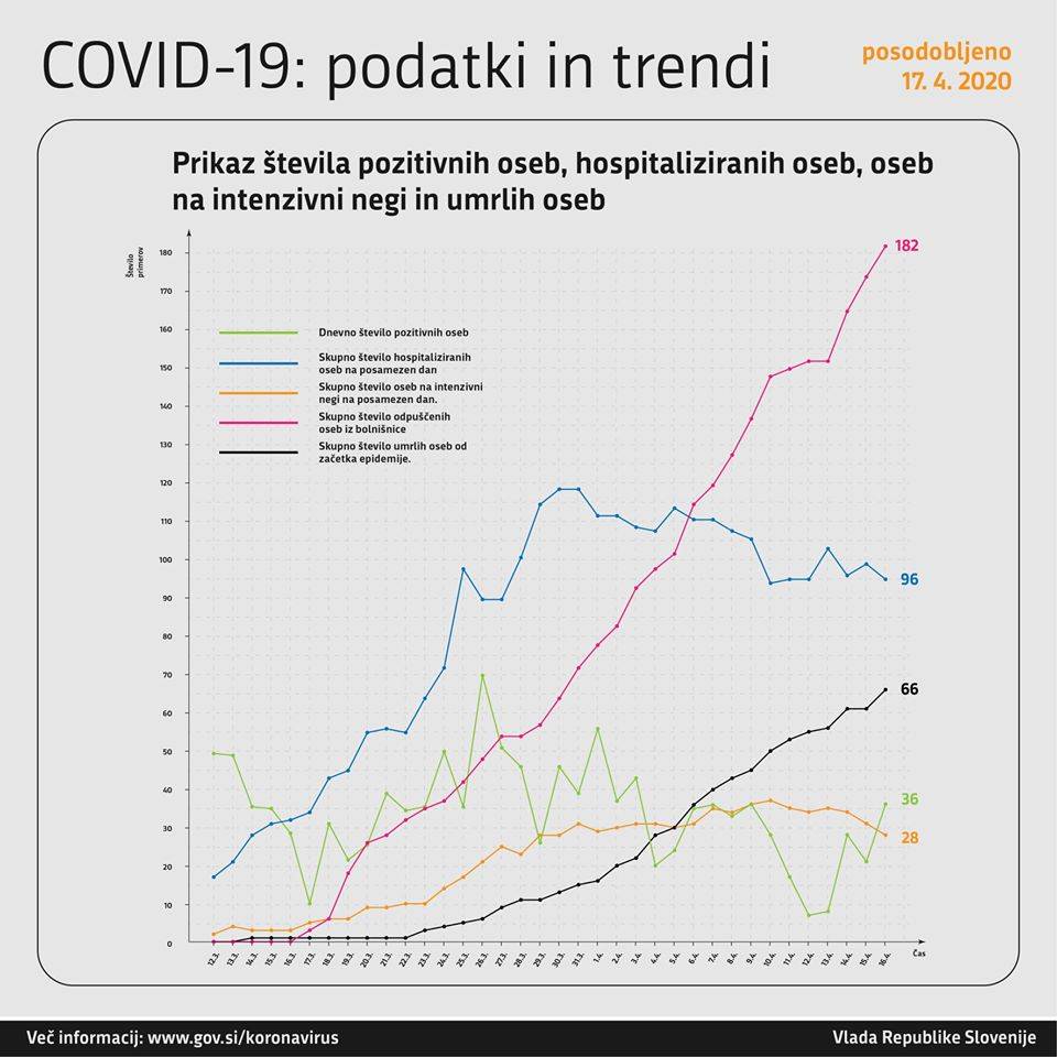 Včeraj zabeležili tudi pet novih smrti, skupno število žrtev znaša 66.