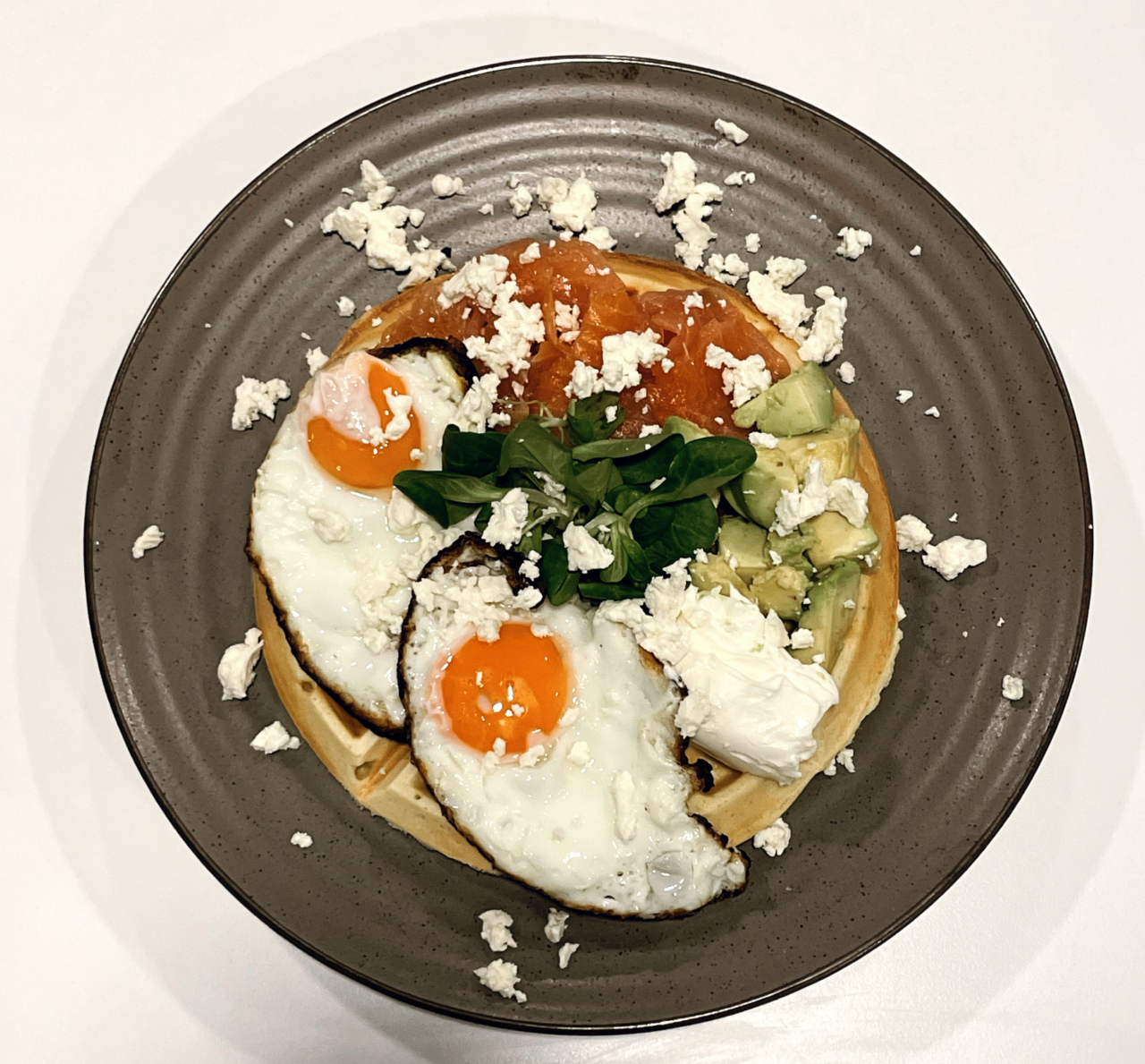 Ponujajo tri vrste slanih vafljev, in sicer z lososom in avokadom, slanino ter s pršutom.