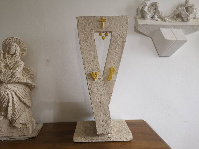 Predviden kip pred cerkvijo naj bi bil visoka približno pet metrov in bi bil tridimenzionalna upodobitev grba murskosoboške škofije.