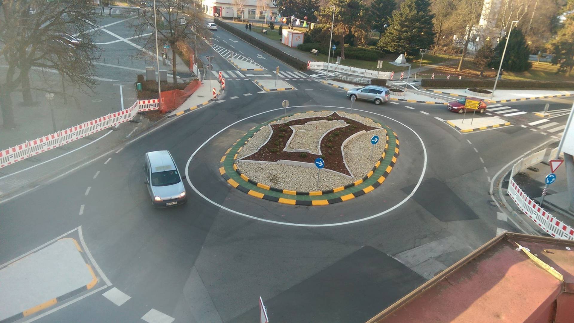Krožišče v središču mesta te dni dobiva končno podobo, že v prihodnjem tedni pa naj bi bil opravljen celo tehnični prevzem novega krožišča. Gradbena dela so bila opravljena v relativno kratkem času, saj je od začetka del do danes minilo nekaj več kot pet tednov. Novonastajajoče krožišče je pozornost občanov in obiskovalcev Murske Sobote pritegnilo tudi zaradi zasaditve v središču otoka. Kako izgleda zasaditev iz ptičje perspektive, je razvidno na fotografiji, ki nam jo je poslal bralec David.