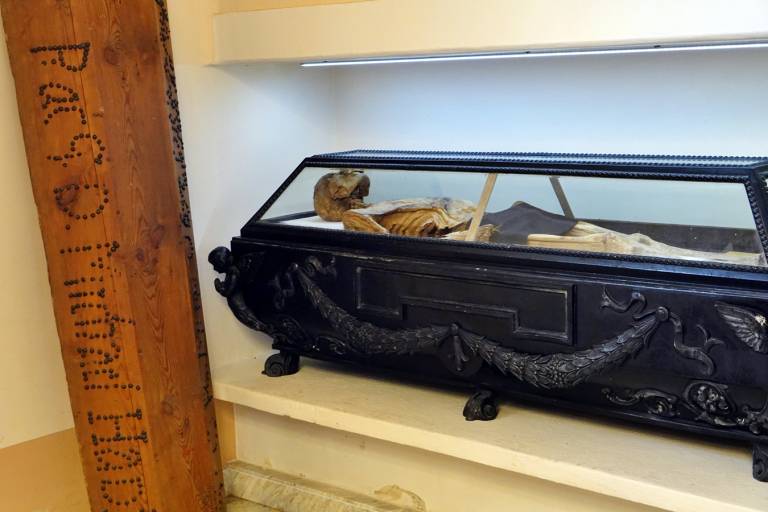 V 18. stoletju so mu v spomin zgradili kapelico Svete Trojice, kjer je v stekleni krsti položeno njegovo naravno mumificirano telo.