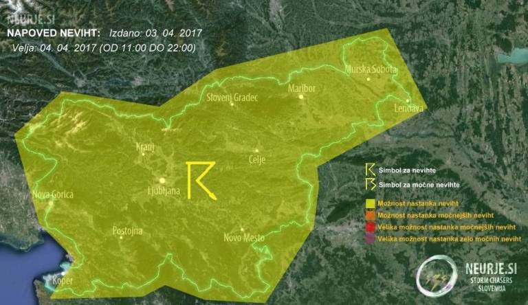 Nevihte lahko spremlja kakšen močnejši naliv, lokalno ni izključen tudi pojav sodre ali manjše toče.