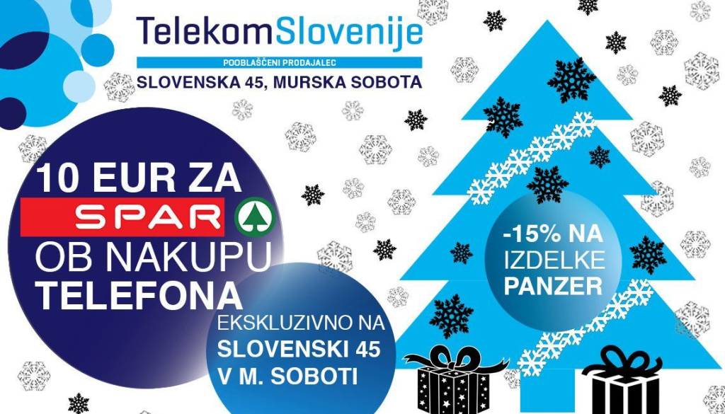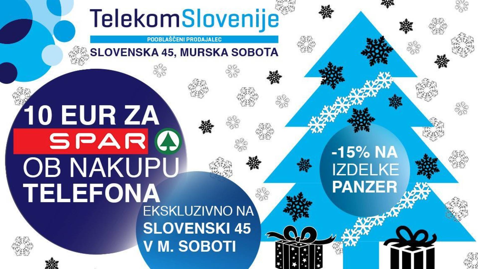 Zato vam Telekomov pooblaščeni prodajalec, v mesecu decembru pripravlja veliko praznično akcijo. Vsi naročniki, ki sklenejo ali podaljšajo naročniško razmerje za 24 mesecev prejmejo ob nakupu telefona darilno kartico SPAR v vrednosti 10€. Poleg posebne praznične ponudbe vam nudijo tudi številne popuste na vso dodatno opremo in kar 15% popust na vse PanzerGlass izdelke.