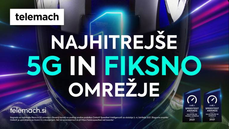 Pri Telemachu so to zimo še dodatno potrdili kakovost svojih storitev s prejemom priznanj Ookla Speedtest® za najhitrejše omrežje 5G in fiksno omrežje v Sloveniji! Obe priznanji uradno potrjujejo meritve s pomočjo aplikacije Ookla Speedtest®, ki so jih Telemachovi uporabniki opravili med 1. julijem in 31. decembrom 2021 v Slovenji.