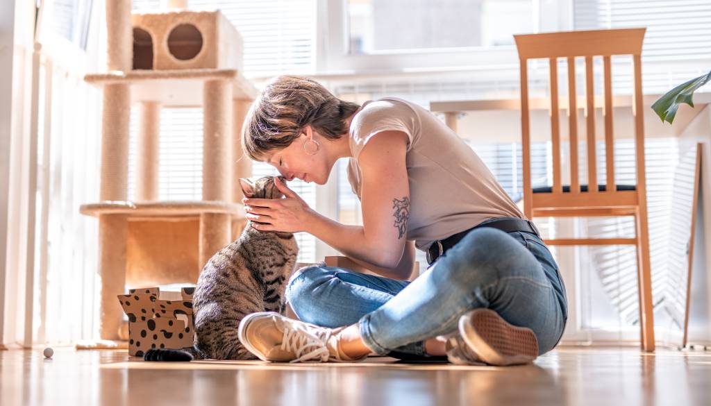 »Včasih je nekaterim dovolj že naša prisotnost,« dodaja: »Odvisno je od mačke, njenih rutin in karakterja.«