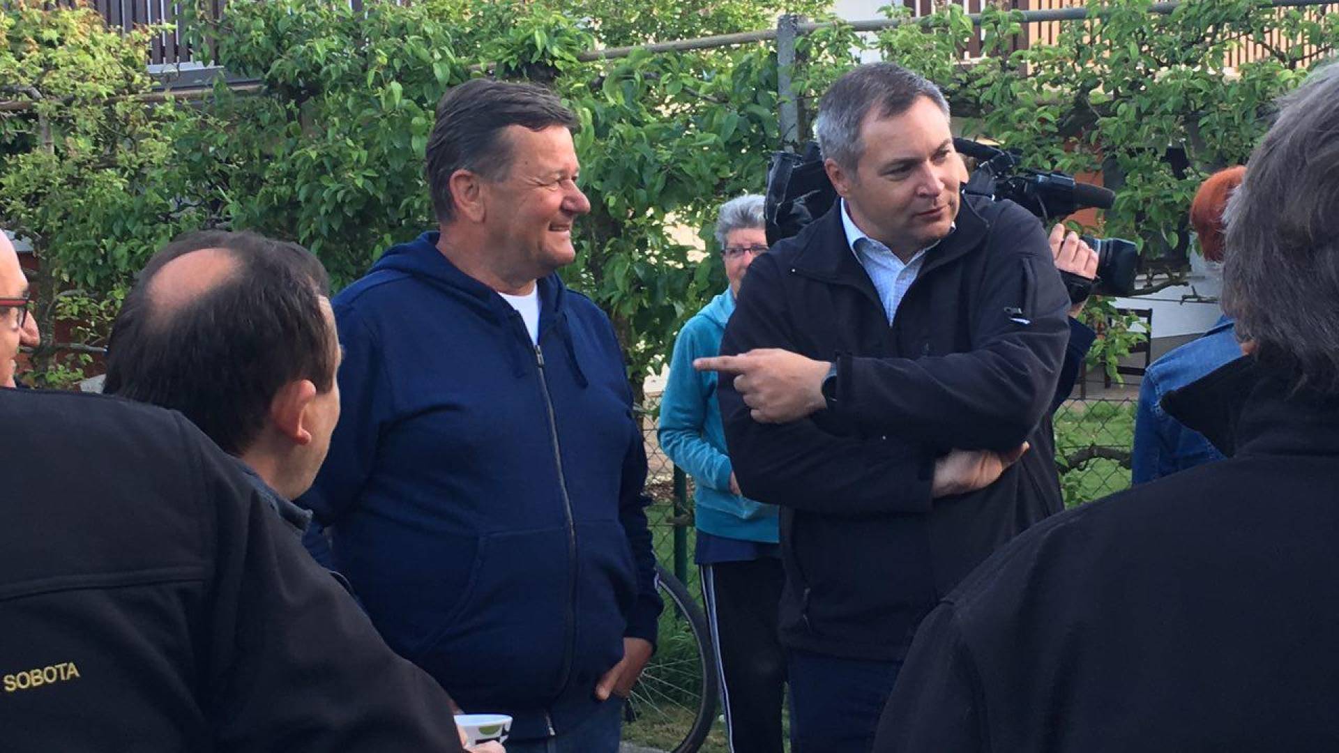 Potem, ko so se zapeljali skozi mesto, so se ustavili tudi pri županu Aleksandru Jevšku, ta jih je pričakal v družbi prijateljev, sosedov in kmetijskega ministra Dejana Židana.