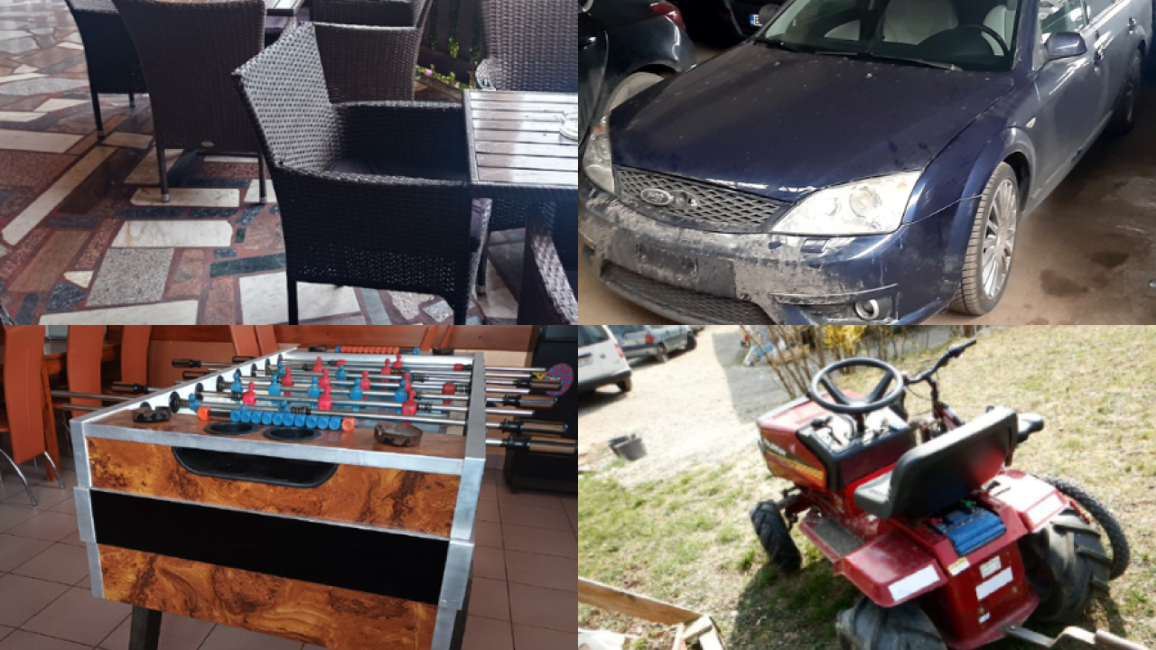Na sodnih dražbah največkrat pristanejo hiše in zemljišča, včasih pa se zgodi, da se prodajajo tudi ostali predmeti, kot so na primer avtomobili, kosilnice, pečice ali vrtne garniture.