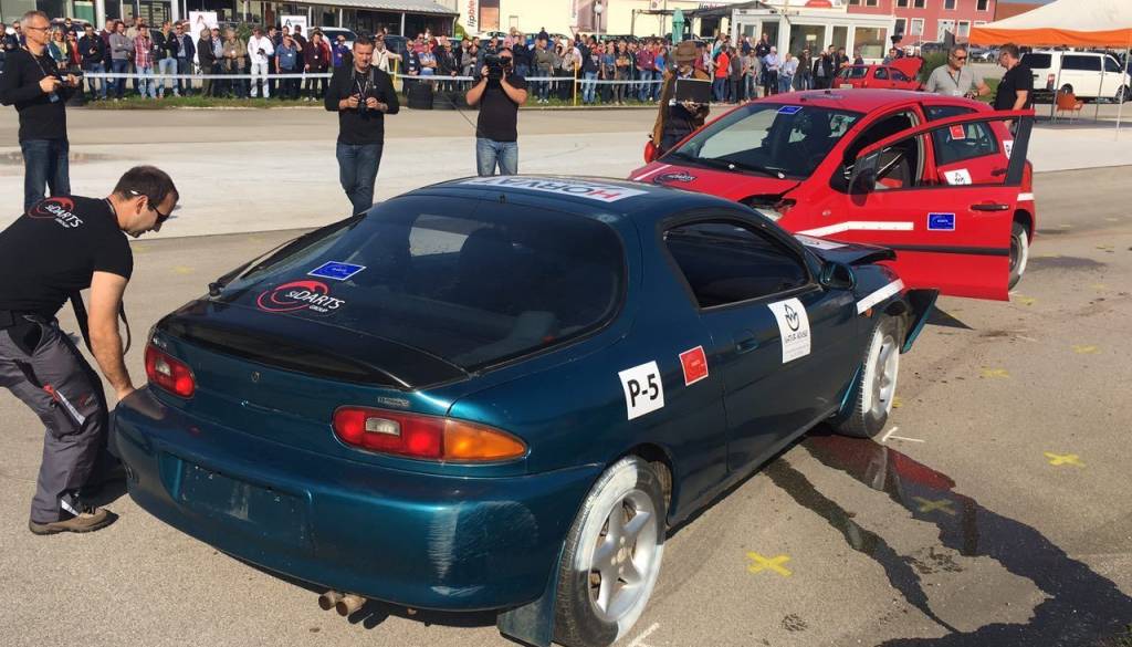 Na poligonu Centra varne vožnje Murska Sobota so danes simulirali trke avtomobilov pri različnih hitrostih. S pomočjo simulacije lahko zavarovalnice med drugim ugotavljajo morebitne goljufije.