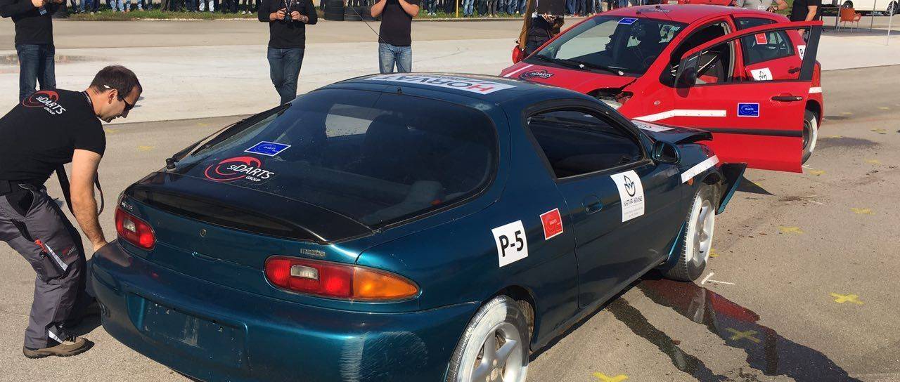 Danes se je na poligonu v Murski Soboti zgodilo kar nekaj nesreč, obenem pa je zagorel tudi osebni avtomobil. Vse to, je bilo k sreči, zgolj zaradi simulacije trkov in nesreč avtomobilov. S pomočjo trkov pri različnih hitrostih, od 20 do 50 kilometrov na uro, so odgovorni tudi odčitavali in analizirali posledice posameznega trka.