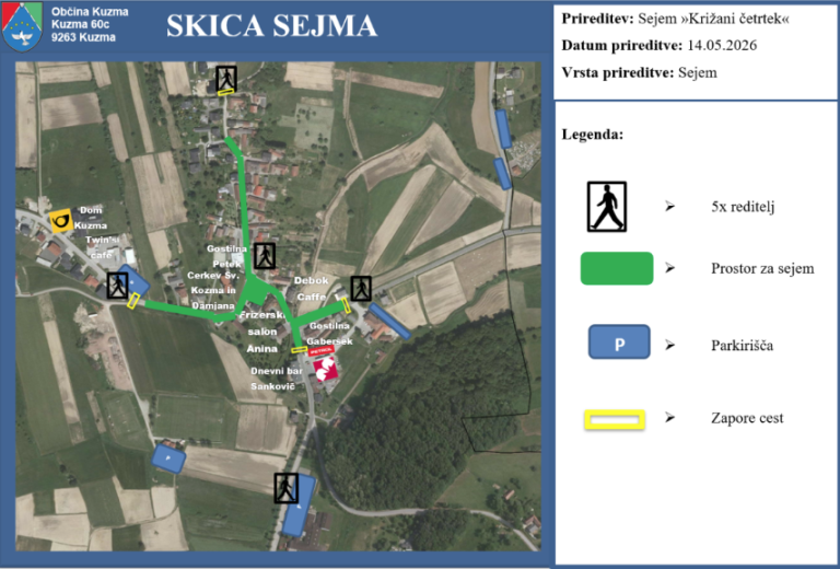 Občina Kuzma je na svoji spletni strani sporočila, da bo letošnji sejem Križani četrtek 14. maja 2026.