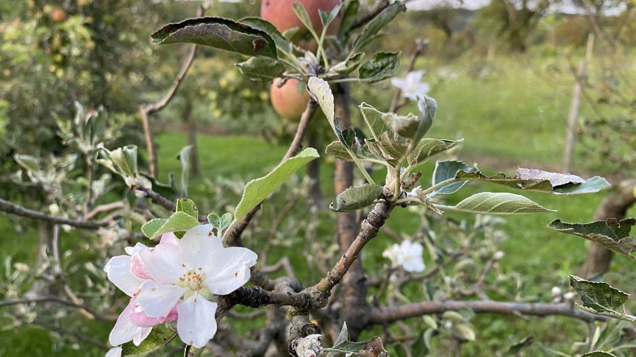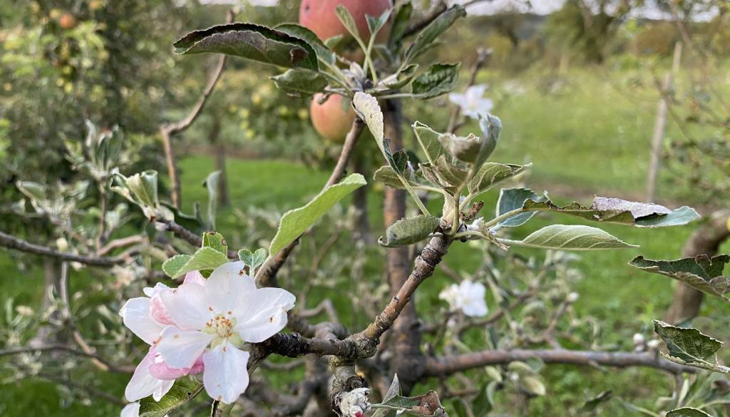 Številne je te dni v sadovnjakih, ki so v tem času polni sadja presenetilo cvetenje. Misel, da drevo cveti zato, ker je toplo vreme, je napačna, razlog tiči povsem drugje.