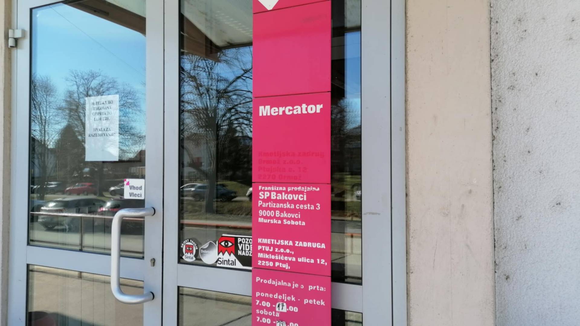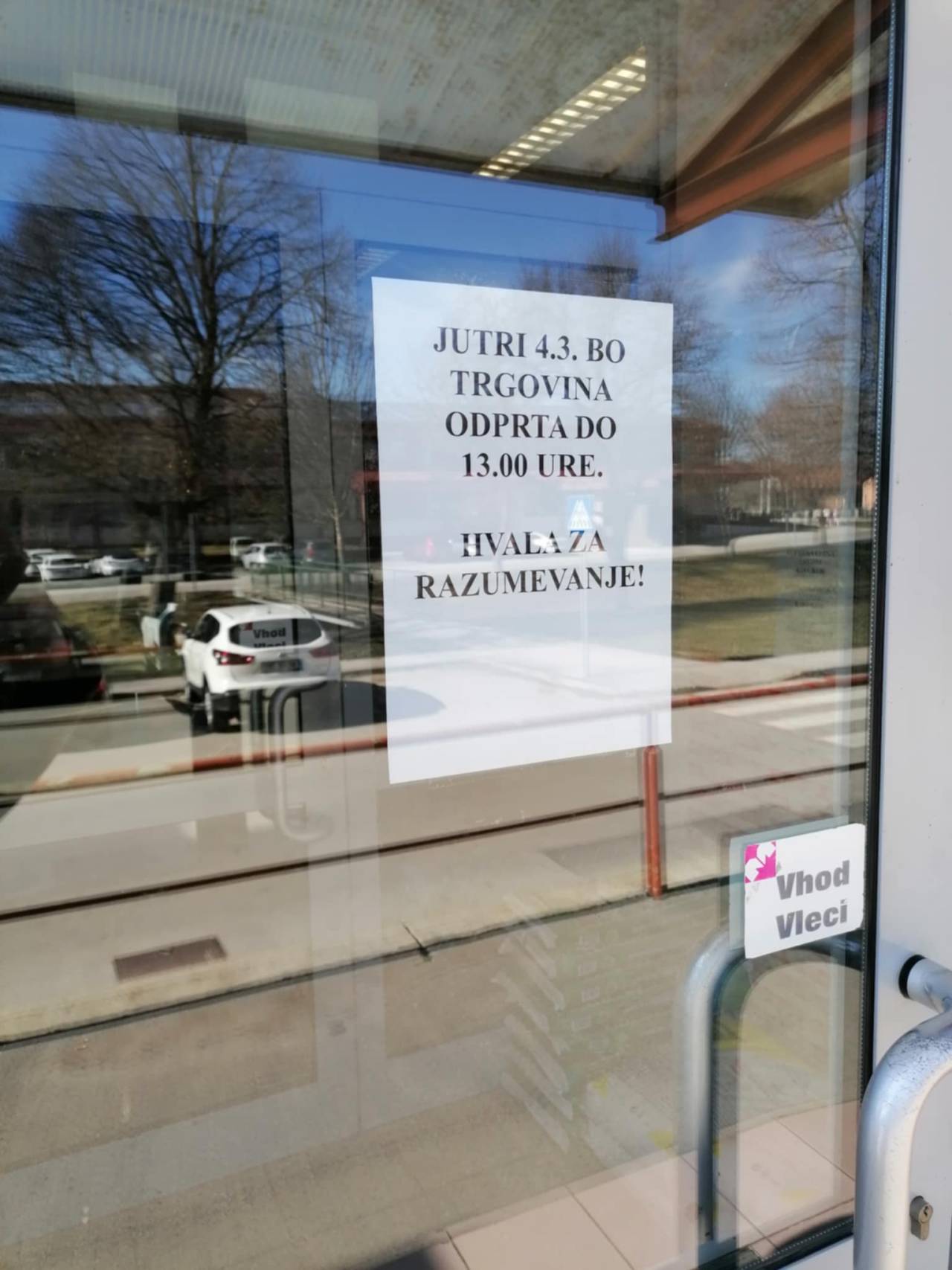 Na vhodnih vratih trgovine so objavili obvestilo o skrajšanem delovnem času, v katerem se zahvaljujejo strankam za razumevanje.