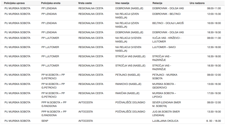 Nadzor hitrosti bodo ob svojem rednem delu opravljali tudi ostali policisti, zato lahko meritve hitrosti pričakujete tudi na drugih lokacijah, ki niso navedene v zgornjem seznamu.
