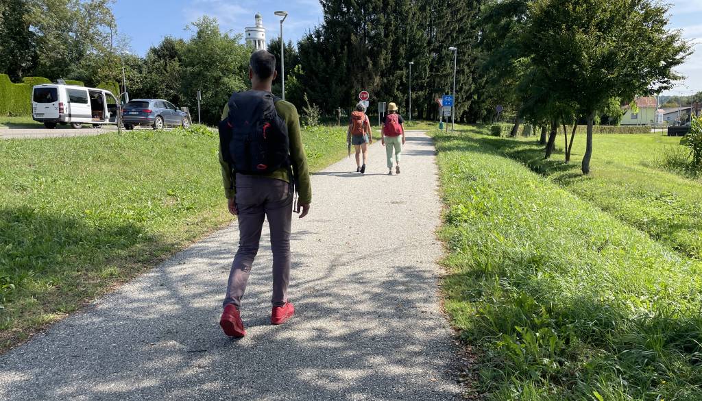 Ker pa se jima je zdelo Prekmurje odličen kraj za nadaljevanje projekta Vzdolž poti, vzvratno hojo po naših krajih nadaljujeta tudi v teh dneh. Z ritensko hojo sta začela v Dobrovniku, danes pa smo ju ujeli v Bogojini, kjer se jima je pridružila tudi prijateljica Nathalie.
