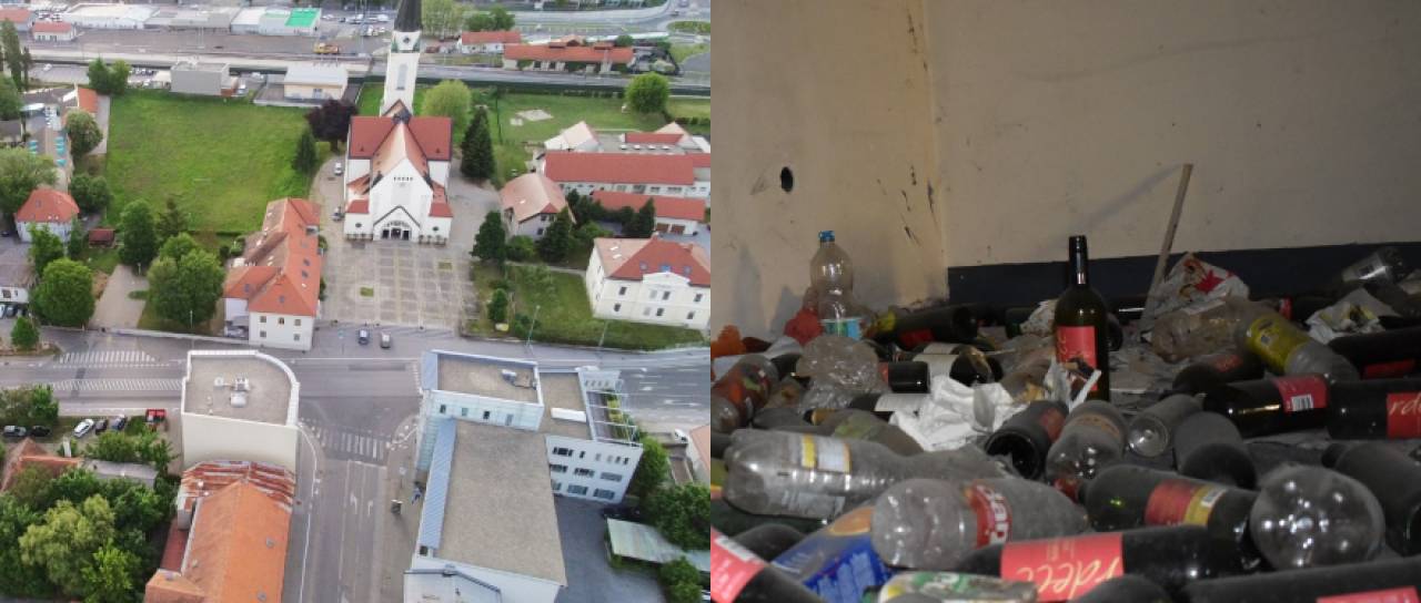 "Enkrat so bili celotni prostori v dimu in sem že hotel poklicati policijo, ampak mi je prijatelj razložil, da le 'topijo' drogo in se od tega kadi," nam je zaupal in dodal, da je ob raziskovanju bil priča marsičemu, med drugim prepiru brezdomcev, največji adrenalinski šok pa je doživljal ob plezanju na streho zgradbe, saj je v neposredni bližini policijska postaja.
