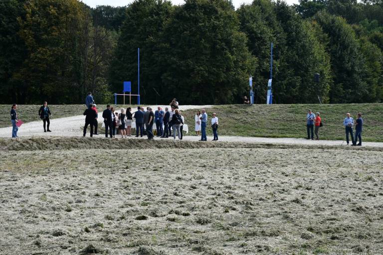 V Benici so se na otvoritveni slovesnosti ob zaključku izgradnje visokovodnega nasipa zbrali partnerji projekta FRISCO 2.2 Skupaj s predstavniki lokalne skupnosti, povezanih strokovnih organizacij in zainteresirane javnosti so objekt uradno otvorili in ga predali namenu zaščite pred poplavami reke Mure.
