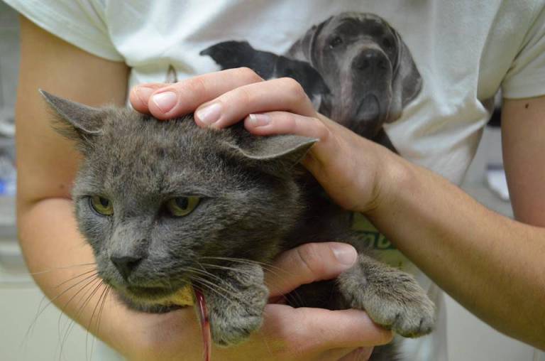 Se spomnite tega bojevitega muca? O njem smo poročali minuli teden, ko so ga v Društvu za zaščito živali Pomurja v Šratovcih našli z zlomljeno medenico.