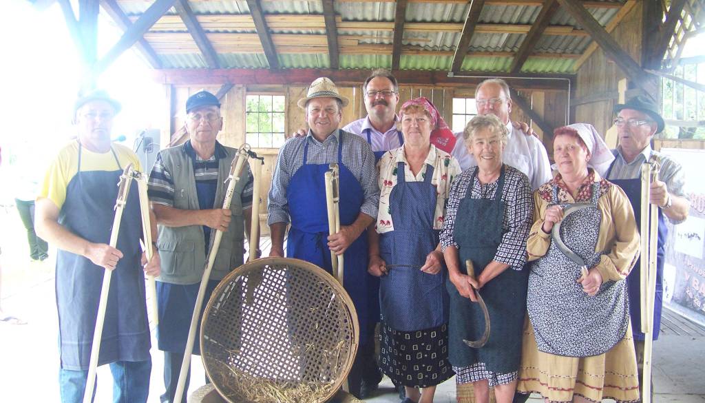 Žetev je bila na vasi vedno pri vsako domačiji velik praznik, tudi tokrat je bilo tako. Ženice iz Babincev so začele s srpi žeti pšenice in možje so jo vezali v snope, nato so možje te snope pšenice ročno zmlatili s cepmi požeti. Za ta žetveni praznik je domačin Franc Flegarič naredil lesene cepi iz lesa. Možje iz vasi Branko Dolamič, Stanko Vreča, Janko Žalar in Franc Lipič pa so z novimi cepmi pšenico zmlatili. Z lesenim sto let starim bintu so nato še očistili pleve od pšenice in ob koncu so zlato rumeno pšenico pridelano na domačiji Jureš v Babincih podarili predstavnikom iz Zreč.
