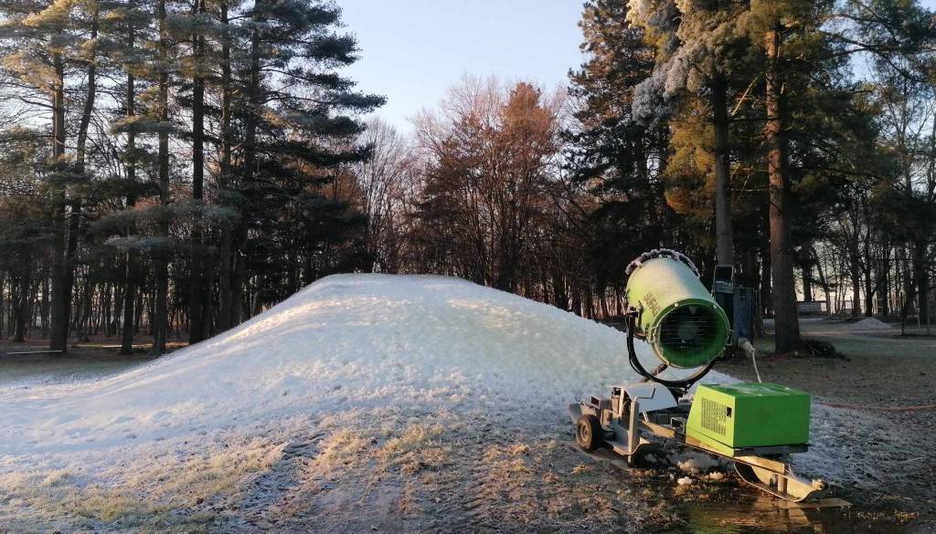 Če snega ni, ga v Beltincih naredijo kar sami. Za popestritev zime so tudi letos prižgali snežni top, ki bo v parku pri beltinškem gradu mlajšim in tudi malo starejšim omogočil igrive radosti na umetnem snegu.