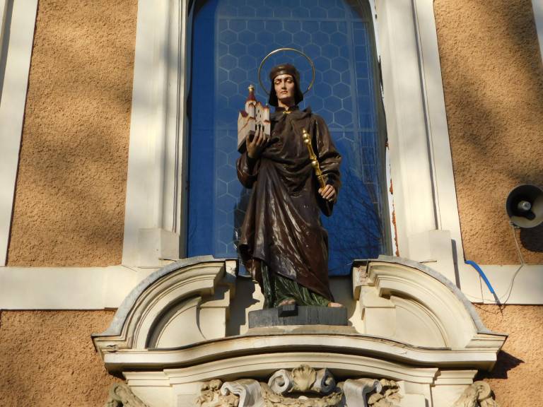 Bine Kovačič je na željo Župnije Beltinci obnovil kip svetega Avguština.