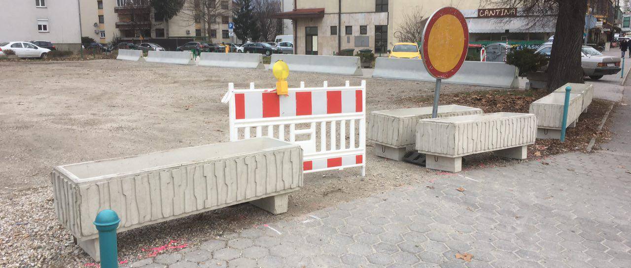 Danes smo lahko v centru mesta, na križišču Zvezne in Kocljeve ulice opazili, da so delavci Pomgrada z betonskimi bloki ogradili parkirišče med blokoma na Vrtni in Slomškovi ulici.