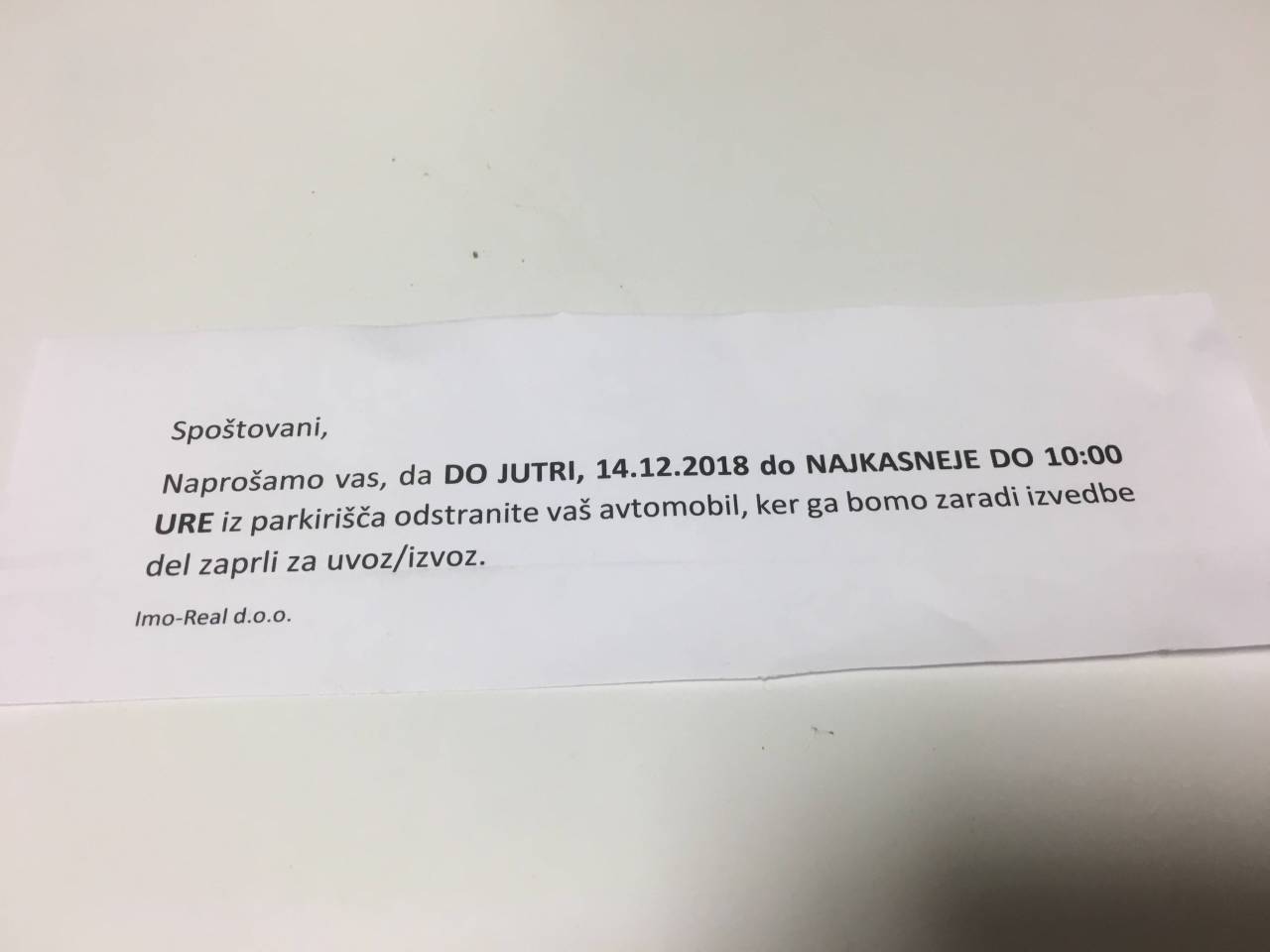 Razlog? Zemljišče naj bi ogradili zaradi urejanja, so nam sporočili iz podjetja Imo-Real. Slednji so lastnike avtomobilov, ki sicer parkirajo na tem mestu prav tako obvestili, da jim morajo najkasneje do jutri odstraniti, saj bo nato parkirišče zaprto za uvoz in izvoz. Kako dolgo bo zaprtje trajalo, še ni znano.
