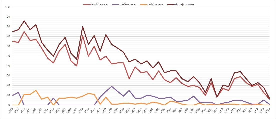 Najmanjša razlika je bila v Gornji Radgoni, kjer so lani zabeležili 60 porok, leto poprej pa 68. Precej manj porok pa so zabeležili tudi v Murski Soboti, kjer jih je bilo lani 133, v letu 2019 pa 175.