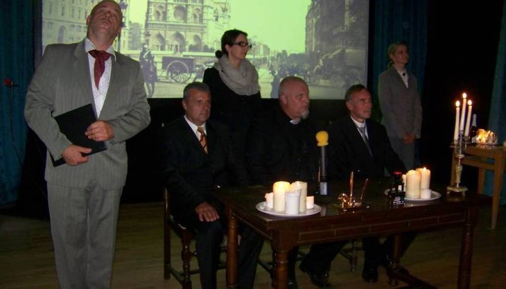 Na Slavičevem večeru na slikovit način predstavili gledališki del predstave, kako so v Parizu potekala poganjanja o priključitvi Prekmurja k matičnemu narodu