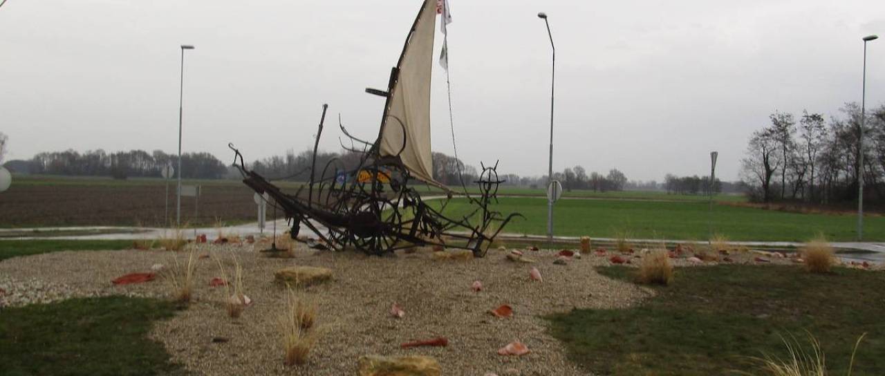 Panonska barka, ki stoji v krožišču je izdelana iz materialov, ki jih je najdemo v lokalnem okolju, izstopa predvsem glina. Poleg barke pa je izpod umetniških rok priznanih umetnikov nastalo veliko izvirnih umetnin z bogato sporočilno vrednostjo.