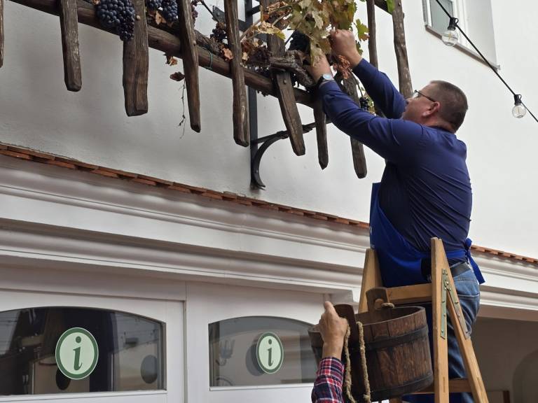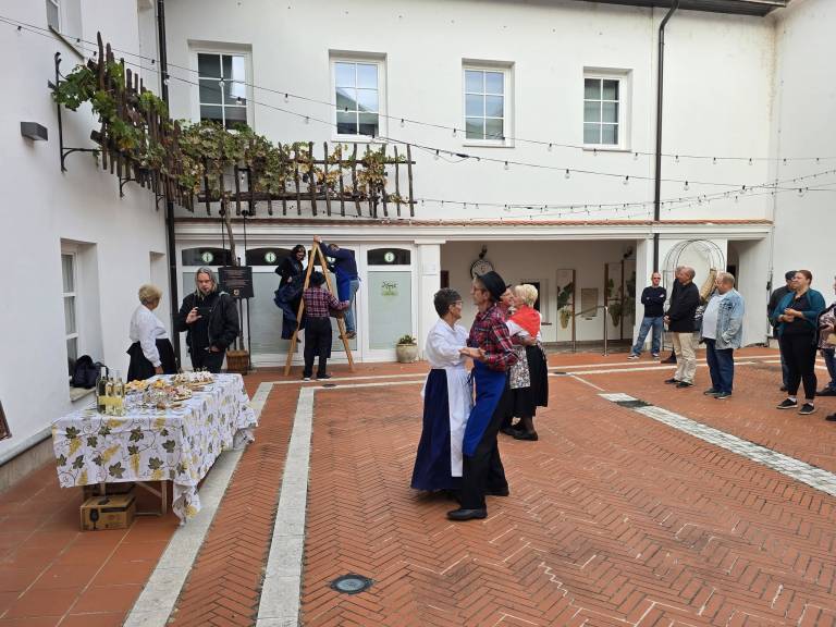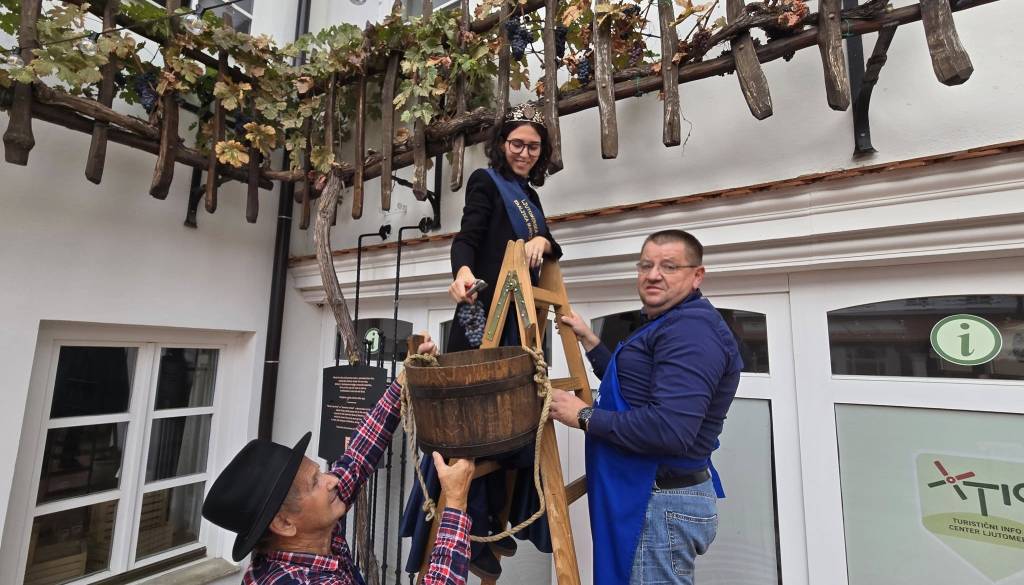 V atriju Mestne hiše v Ljutomeru je bila tradicionalna trgatev potomke najstarejše trte na svetu z mariborskega Lenta, ki jo vsako leto pripravi Društvo vinogradnikov in prijateljev vina Ljutomer v sodelovanju s Klubom prleških babic.