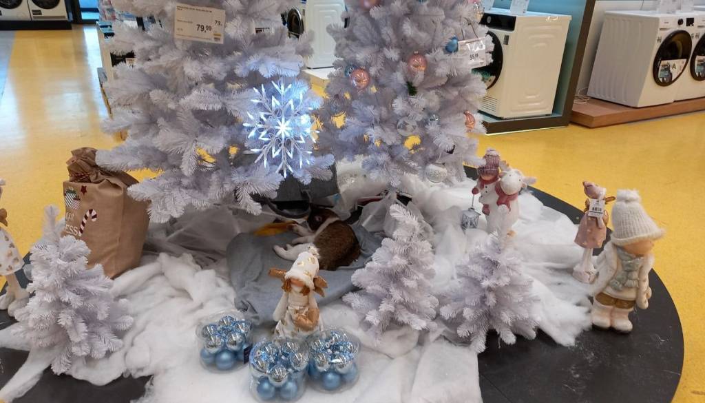 V trgovskem vrvežu sredi mariborske trgovine je toplo zavetje pred šestimi meseci našla muca.
