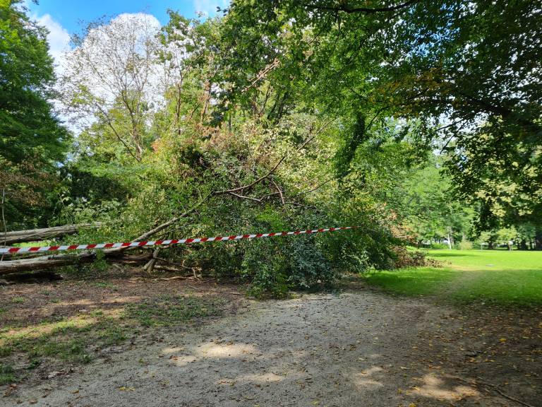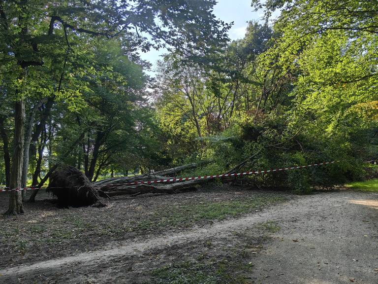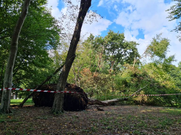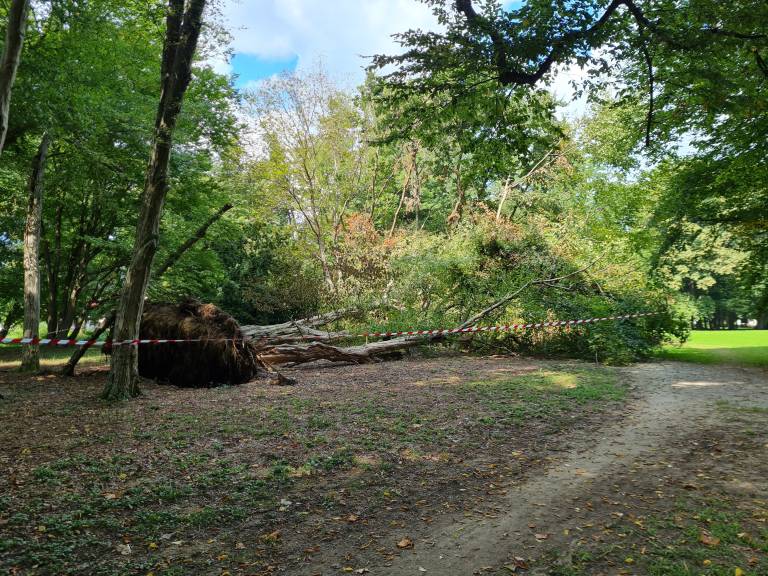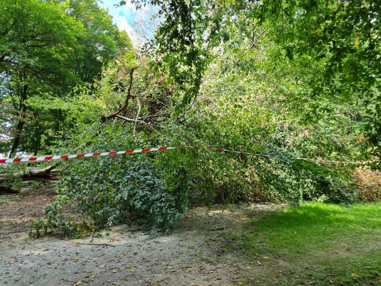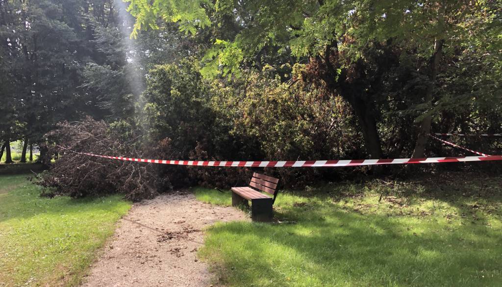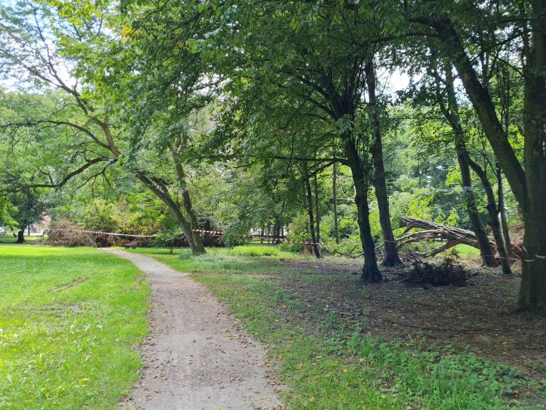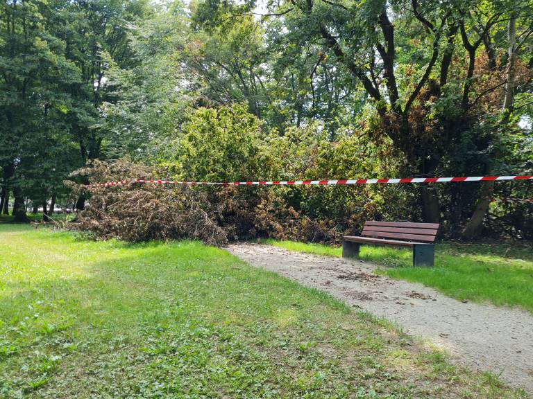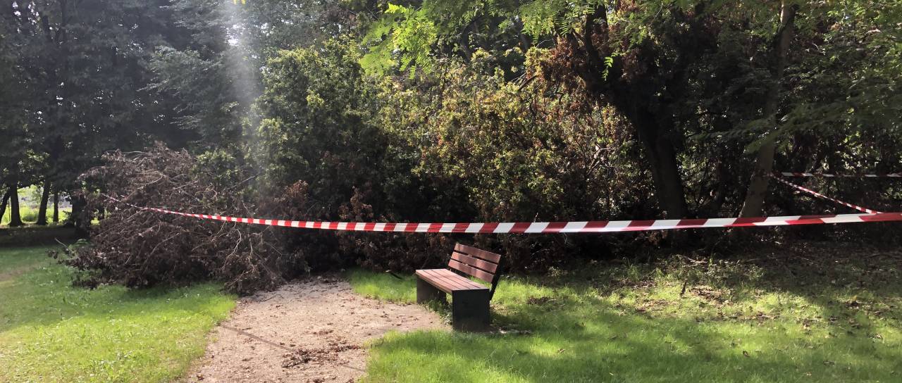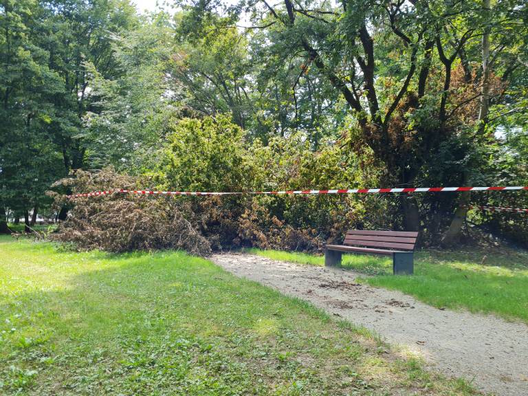 V mestnem parku se je zaradi neurja podrlo več dreves, drevesa pa so se dodatno podrla ob neprizanesljivi ujmi, nekatera od teh še zdaj niso odstranjena.
