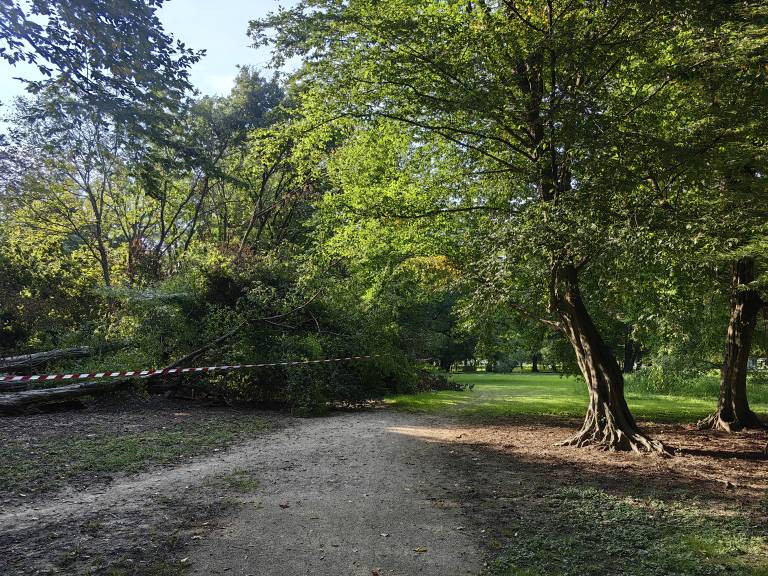 Težavo povzroča predvsem gromozansko drevo, natančneje gaber, ki se je zrušil na tamkajšnjo sprehajalno pot, to sedaj kolesarjem in sprehajalcem onemomogoča sprehod oziroma vožnjo po mestnem parku.