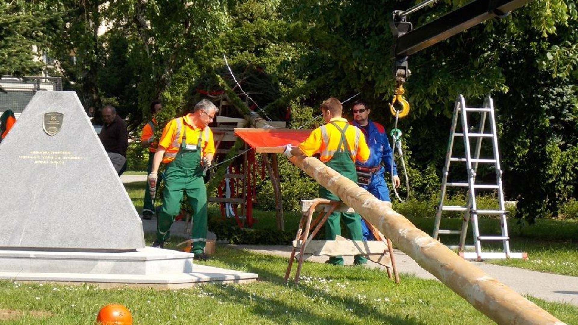 Ob glasbeni spremljavi Bakovske godbe in plesnem nastopu mažoretk, so danes ob 11 uri v Murski Soboti postavili mlaj.