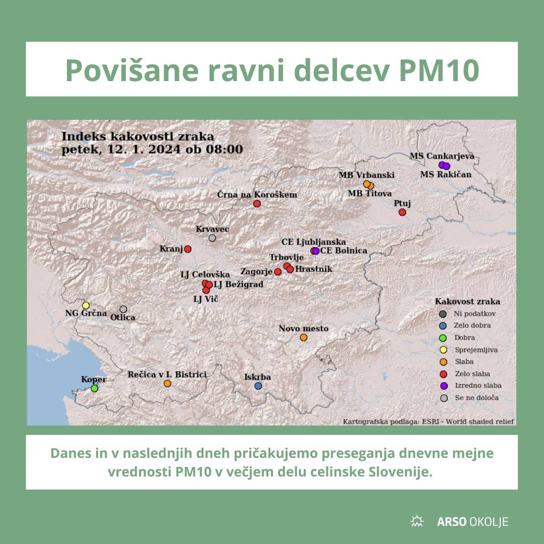 Prav zimski meseci - december, januar, februar in tudi marec - so meseci, ki je zrak nad slovenskimi mesti najbolj obremenjen z delci PM10. Prometu, ki velja za enega glavnih onesnaževalcev zraka, se pozimi pridružijo še domače kurjave in neugodni klimatski pogoji.